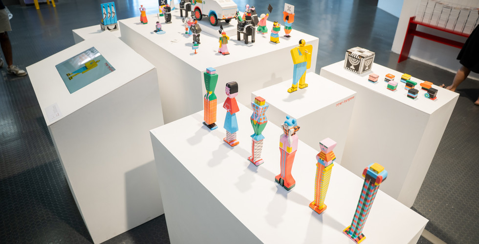 האוצרות הצטיינה בארגון ובהנגשה. כל פרויקט קיבל במה הולמת ותפאורה מתאימה: חדר המשחקים היה מזמין במיוחד, חדרי הסרטים החשוכים אפשרו התעמקות טובה, חדר האיור הפתיע בציורי קיר ששימשו כטיזר לפרויקטים שבתוכו, והעמדת פרויקטי הספרים הטיפוגרפיים על שולחן מרכזי בקומה העליונה אפשרה התמקדות נוחה. עם זאת, ייתכן שחדר ייעודי ומבודד היה מאפשר חוויית קריאה שקטה ומעמיקה אף יותר. המבקרים נהנו ממפות התמצאות ברורות וגלויות לפרויקטים שניתן לקחת, אך בעיניי ניתן היה להוסיף מסכי וידאו עם טיזרים קצרים, בדומה לטיזר הוויזואלי בחדר האיור, שעבד נהדר ויכול היה להעשיר גם חללים נוספים. בדיוק כפי שציורי הקיר רמזו על התוכן המצפה למבקרים והגבירו את תחושת הציפייה, ניתן היה ליישם פתרון דומה גם בחדרים אחרים, כך שכל אזור בתערוכה יציע רמזים מקדימים ויעניק חוויית גילוי הדרגתית.